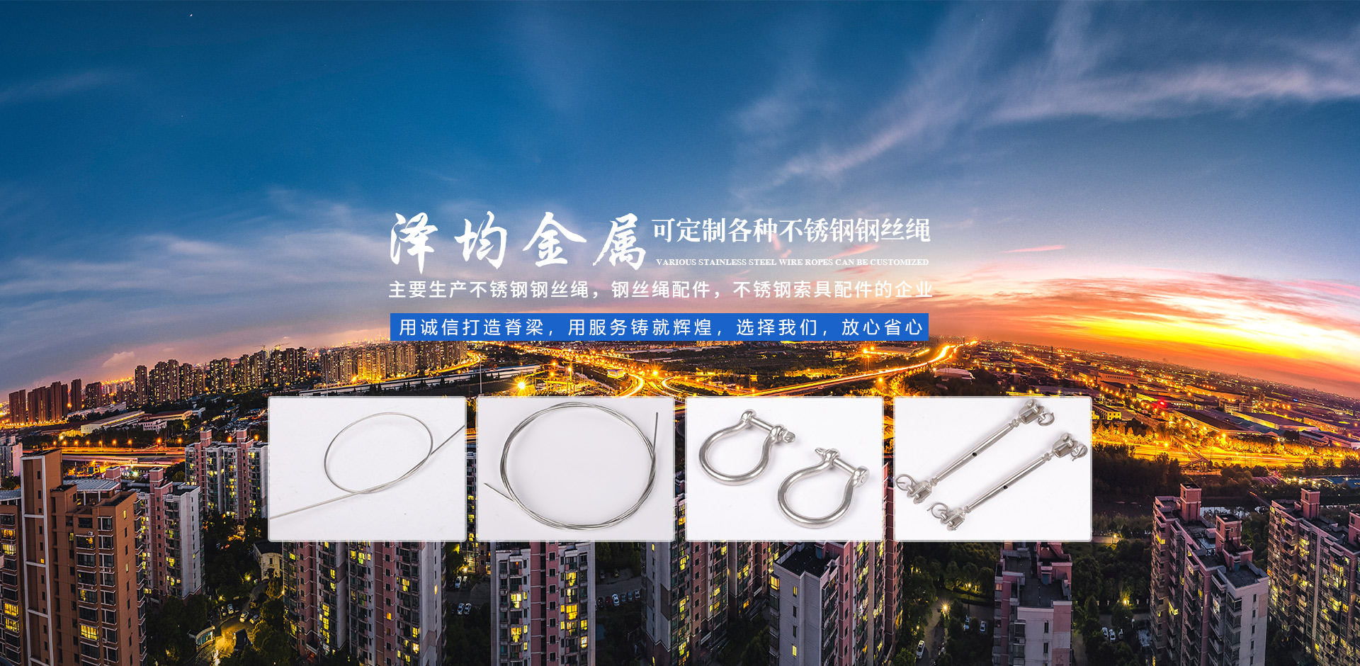 泰州市澤均金屬制品有限公司是一家生產(chǎn)不銹鋼鋼絲繩,鋼絲繩配件,不銹鋼索具配件的企業(yè)。 本廠主要生產(chǎn)各種型號(hào)鋼絲繩不銹鋼絲繩、涂塑不銹鋼絲繩、漁具鋼絲線、包膠不銹鋼絲繩、高強(qiáng)度不銹鋼絲繩、不銹鋼拉索、不銹鋼索具等。產(chǎn)品以304、304L、316、316L等不銹耐酸鋼為原料,生產(chǎn)鋼絲繩結(jié)構(gòu)有單股繩(即1*7、1*12、1*19、1*37)、多股繩(即3*3、3*7、6*7、7*7、6*19、......